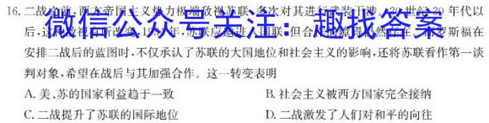 辽宁省名校联盟2022-2023学年高二下学期6月联考历史试卷试卷答案,我们目前收集并整理关于辽宁省名校联盟2022-2023学年高二下学期6月联考历史试卷得系列试题及其答案,更多试题答案请关注微信公众号:趣找答案/直接访问www.qzda.com(趣找答案) 辽宁省名校联盟20...