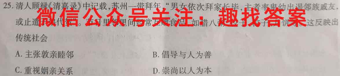 2022-2023学年辽宁省朝阳市普通高中高一年级考试卷(23-220A)历史试卷试卷答案,我们目前收集并整理关于2022-2023学年辽宁省朝阳市普通高中高一年级考试卷(23-220A)历史试卷得系列试题及其答案,更多试题答案请关注微信公众号:趣找答案/直接访问www.qzda...