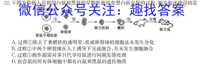 2023年全国高考名校名师联席命制押题卷(二)生物试卷答案试卷答案,我们目前收集并整理关于2023年全国高考名校名师联席命制押题卷(二)生物试卷答案得系列试题及其答案,更多试题答案请关注微信公众号:趣找答案/直接访问www.qzda.com(趣找答案) 2023年全国高考名校名师...