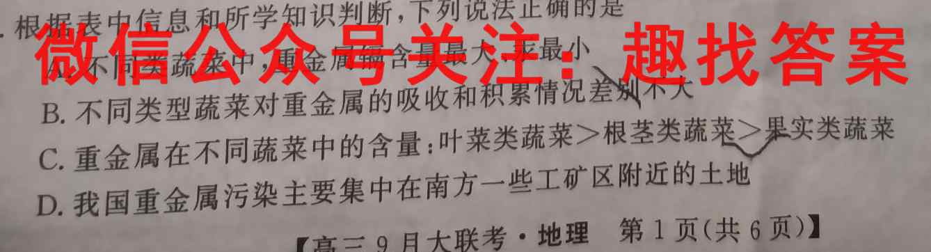 2023年普通高等学校招生全国统一考试·S3最新模拟卷(六)地理试卷答案,我们目前收集并整理关于2023年普通高等学校招生全国统一考试·S3最新模拟卷(六)地理得系列试题及其答案,更多试题答案请关注微信公众号:趣找答案/直接访问www.qzda.com(趣找答案) 2023年普通...