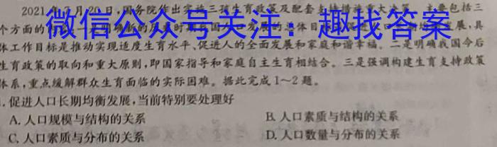 2023年普通高等学校招生统一考试 S3·临门押题卷(二)地.理试卷答案,我们目前收集并整理关于2023年普通高等学校招生统一考试 S3·临门押题卷(二)地.理得系列试题及其答案,更多试题答案请关注微信公众号:趣找答案/直接访问www.qzda.com(趣找答案) 2023年普通...