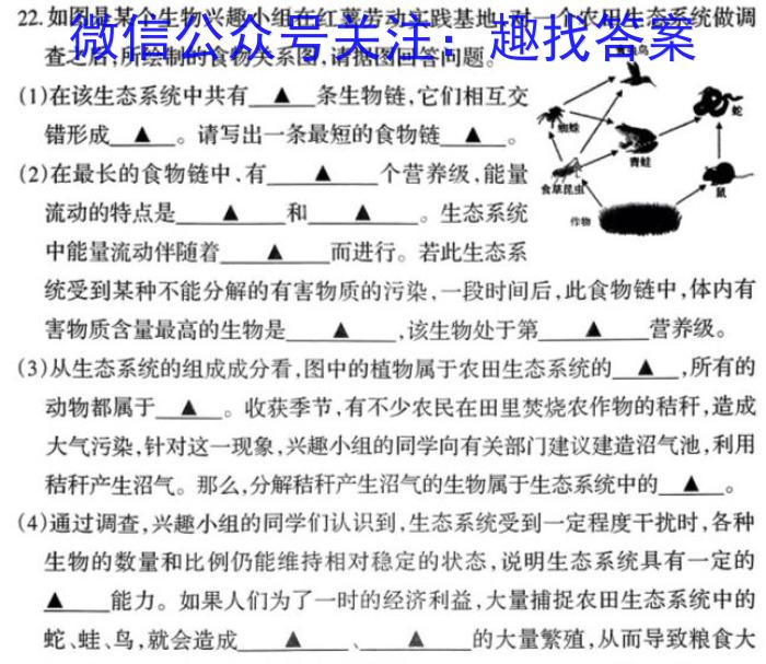 2023衡水金卷先享题信息卷新高考新教材(一)生物试卷答案试卷答案,我们目前收集并整理关于2023衡水金卷先享题信息卷新高考新教材(一)生物试卷答案得系列试题及其答案,更多试题答案请关注微信公众号:趣找答案/直接访问www.qzda.com(趣找答案) 2023衡水金卷先享题信息...