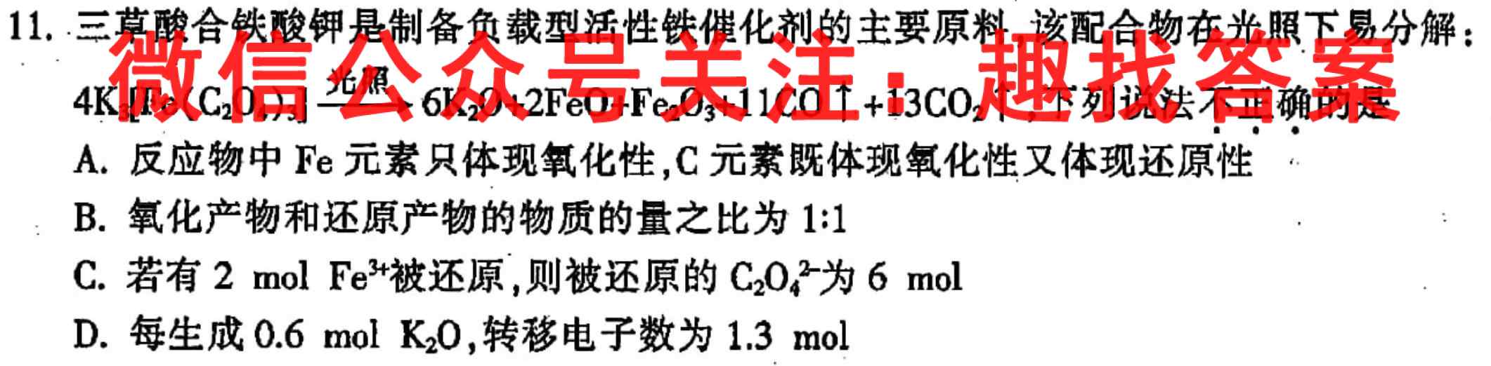2023年普通高等学校全国统一模拟招生考试 新未来12月联考化学试卷答案,我们目前收集并整理关于2023年普通高等学校全国统一模拟招生考试 新未来12月联考化学得系列试题及其答案,更多试题答案请关注微信公众号:趣找答案/直接访问www.qzda.com(趣找答案) 2023年普通...