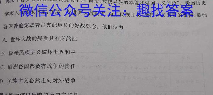 2023年普通高等学校招生全国统一考试专家猜题卷(一)历史试卷试卷答案,我们目前收集并整理关于2023年普通高等学校招生全国统一考试专家猜题卷(一)历史试卷得系列试题及其答案,更多试题答案请关注微信公众号:趣找答案/直接访问www.qzda.com(趣找答案) 2023年普通高等...