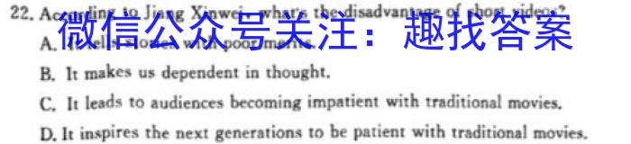 2023年江西省中考命题信息原创卷(三)英语试题试卷答案,我们目前收集并整理关于2023年江西省中考命题信息原创卷(三)英语试题得系列试题及其答案,更多试题答案请关注微信公众号:趣找答案/直接访问www.qzda.com(趣找答案) 2023年江西省中考命题信息原创卷(三)英语试...