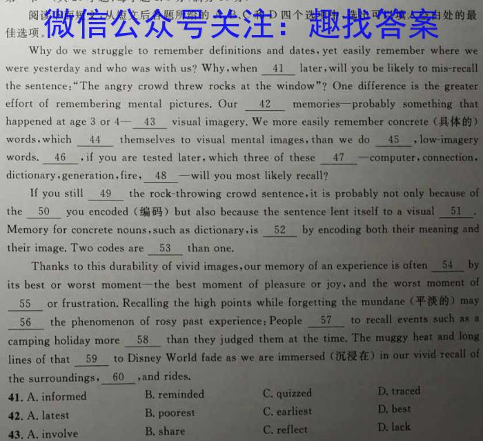 2023年湖南新高考教学教研联盟高一5月联考英语试题试卷答案,我们目前收集并整理关于2023年湖南新高考教学教研联盟高一5月联考英语试题得系列试题及其答案,更多试题答案请关注微信公众号:趣找答案/直接访问www.qzda.com(趣找答案) 2023年湖南新高考教学教研联盟高一5...