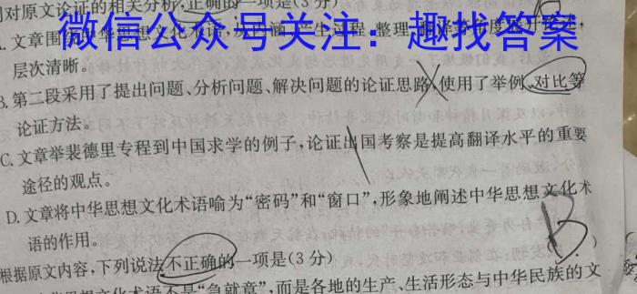 2023年百万大联考高三年级5月联考语文试卷答案,我们目前收集并整理关于2023年百万大联考高三年级5月联考语文得系列试题及其答案,更多试题答案请关注微信公众号:趣找答案/直接访问www.qzda.com(趣找答案) 2023年百万大联考高三年级5月联考语文试卷答案 以下是该试卷...