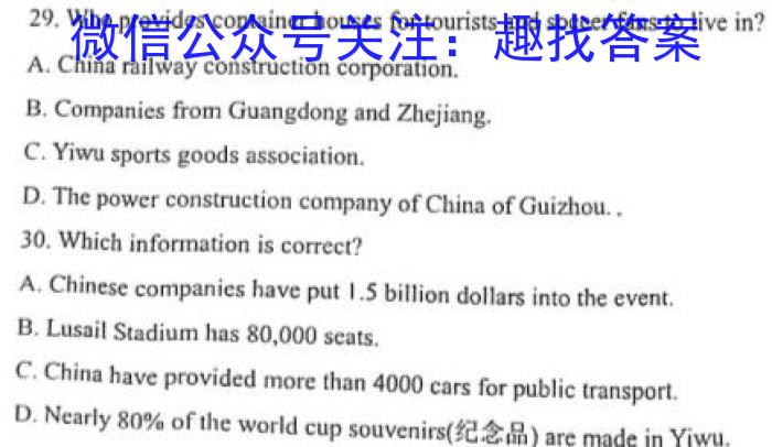 2023年陕西省初中学业水平考试·全真模拟卷(二)A版英语试题试卷答案,我们目前收集并整理关于2023年陕西省初中学业水平考试·全真模拟卷(二)A版英语试题得系列试题及其答案,更多试题答案请关注微信公众号:趣找答案/直接访问www.qzda.com(趣找答案) 2023年陕西省初...