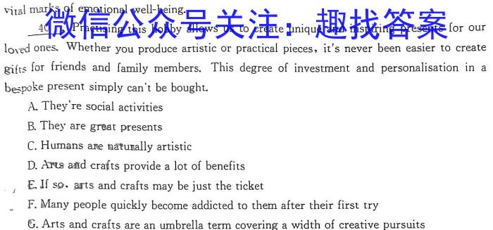 2023年陕西省初中学业水平考试全真模拟(四)B卷英语试题试卷答案,我们目前收集并整理关于2023年陕西省初中学业水平考试全真模拟(四)B卷英语试题得系列试题及其答案,更多试题答案请关注微信公众号:趣找答案/直接访问www.qzda.com(趣找答案) 2023年陕西省初中学业水...