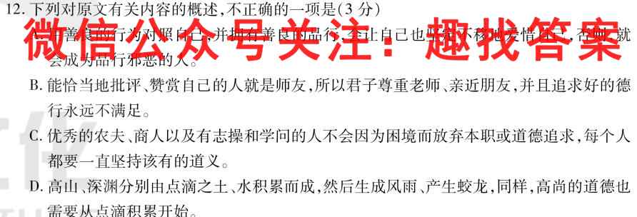 QSQT 2022~2023学年度上学期高三期末联考(3284C)语文试卷答案,我们目前收集并整理关于QSQT 2022~2023学年度上学期高三期末联考(3284C)语文得系列试题及其答案,更多试题答案请关注微信公众号:趣找答案/直接访问www.qzda.com(趣找答案) Q...